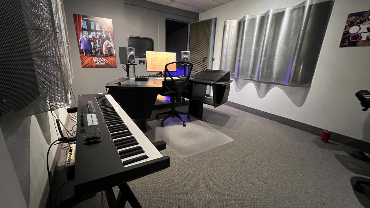 Whether you’ve used FL Studio, Ableton, Reaper, Logic or Pro Tools for music production, Studio 6 is the synth and MIDI education room here at OIART. With a semi-anechoic chamber, students also learn to track vocals, dialogue for podcasts and Foley or sound effects in this room. With a variety of different DAWs (Digital Audio workstations), this studio is a great space to understand the signal flow for multiple synths and keyboards and how to record in various scenarios. This studio is where OIART students in the electronic world come to escape and create.